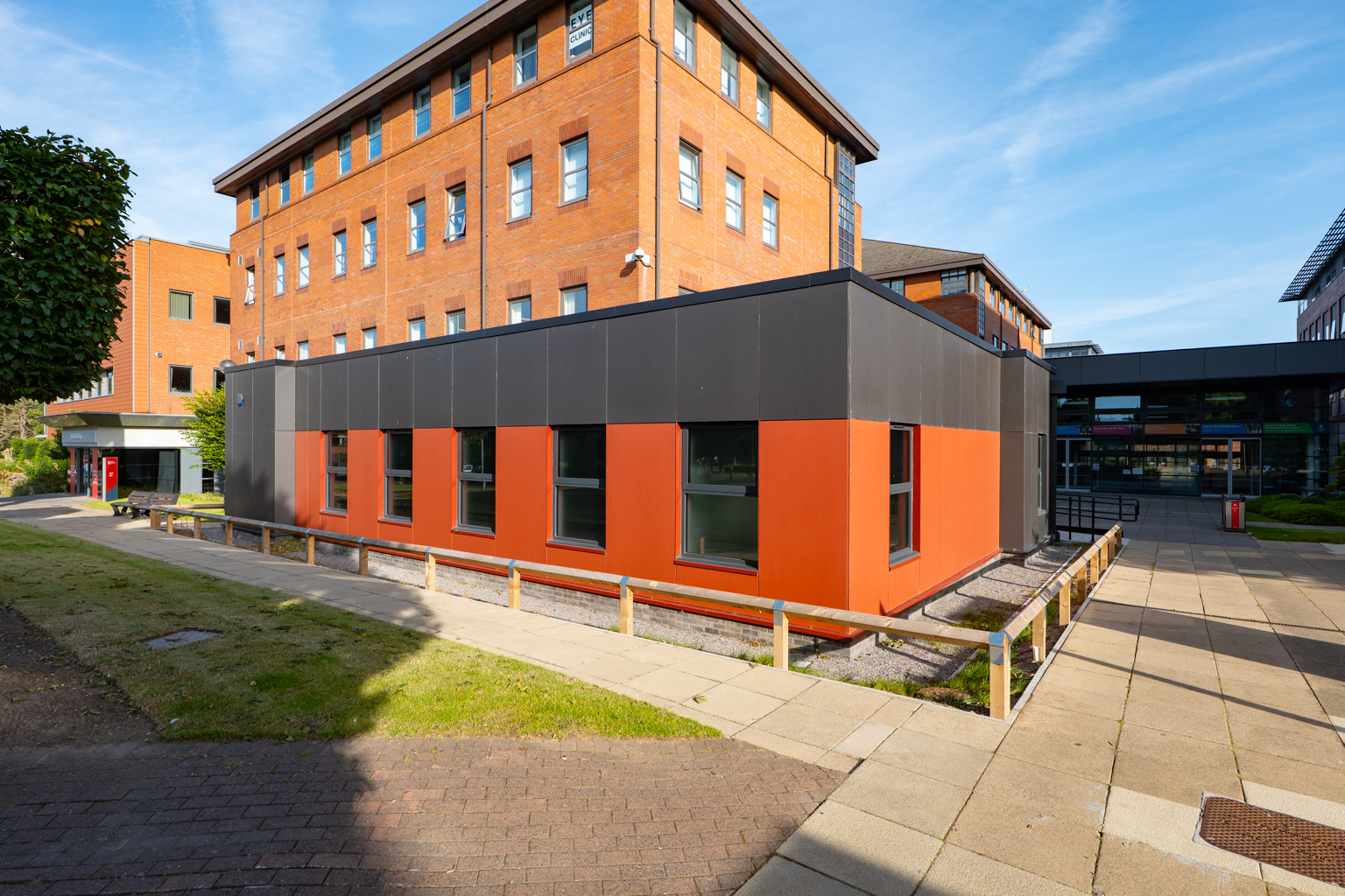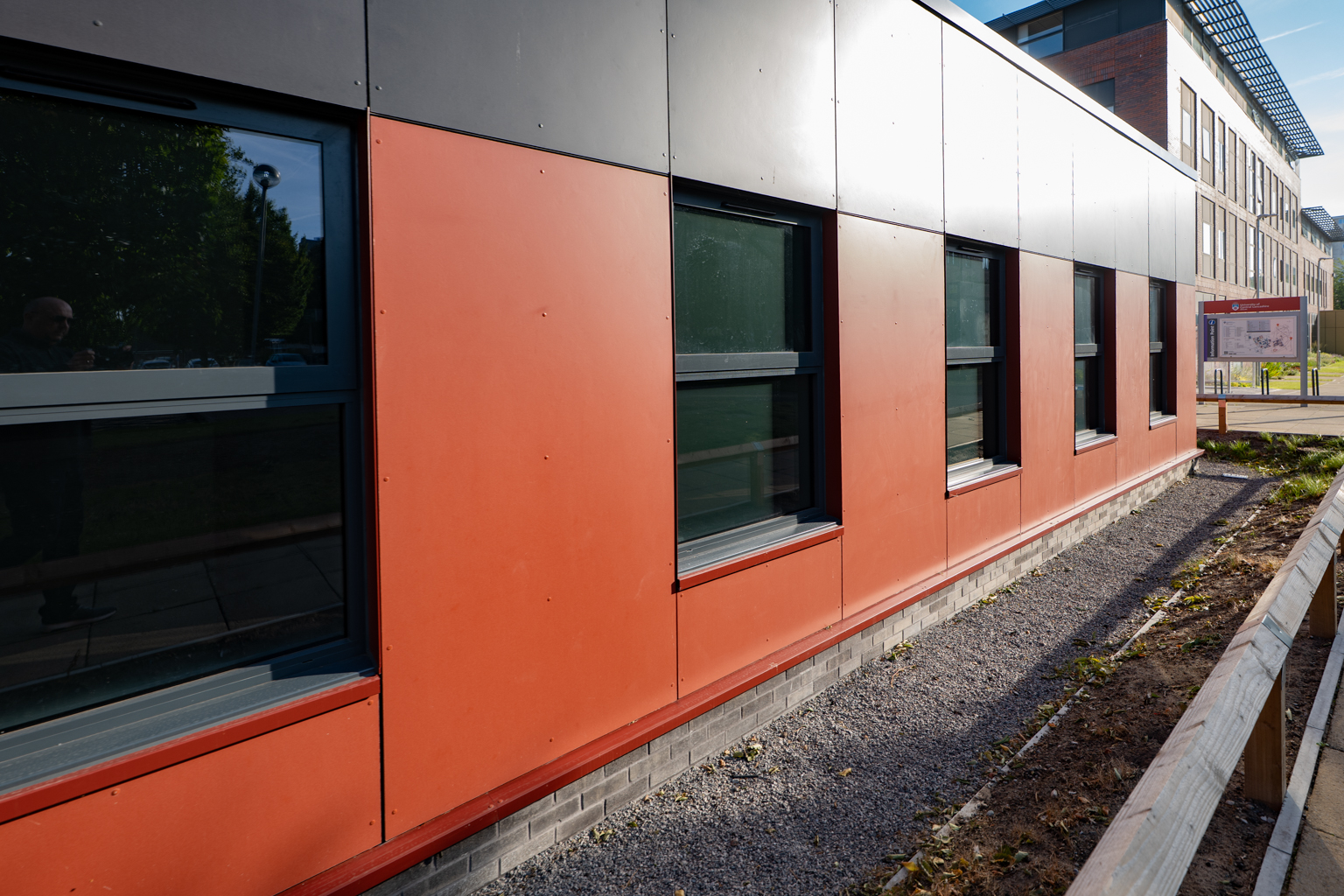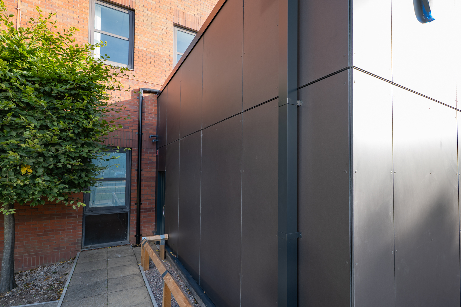 AMS Cladding installed an eye-catching charcoal and ruby rainscreen cladding system, providing aesthetics in keeping with their other developments, with thermal benefits.